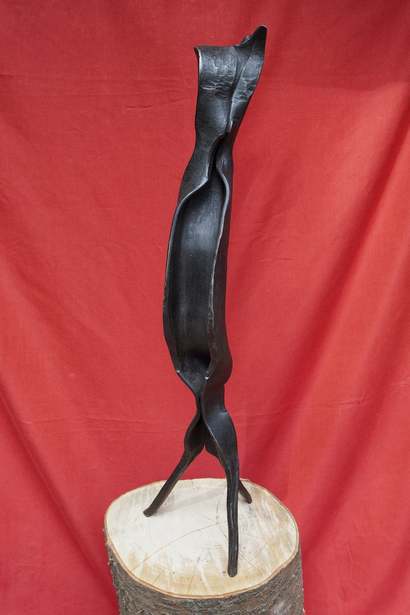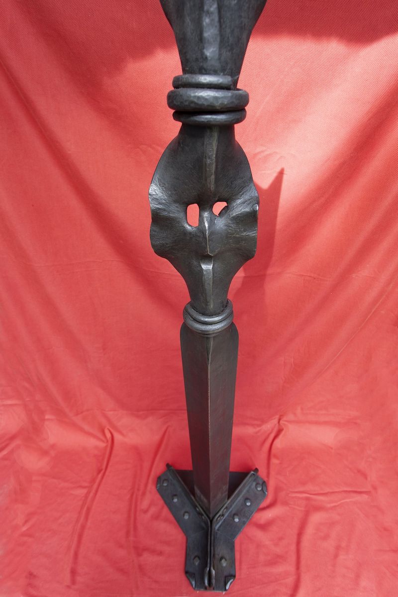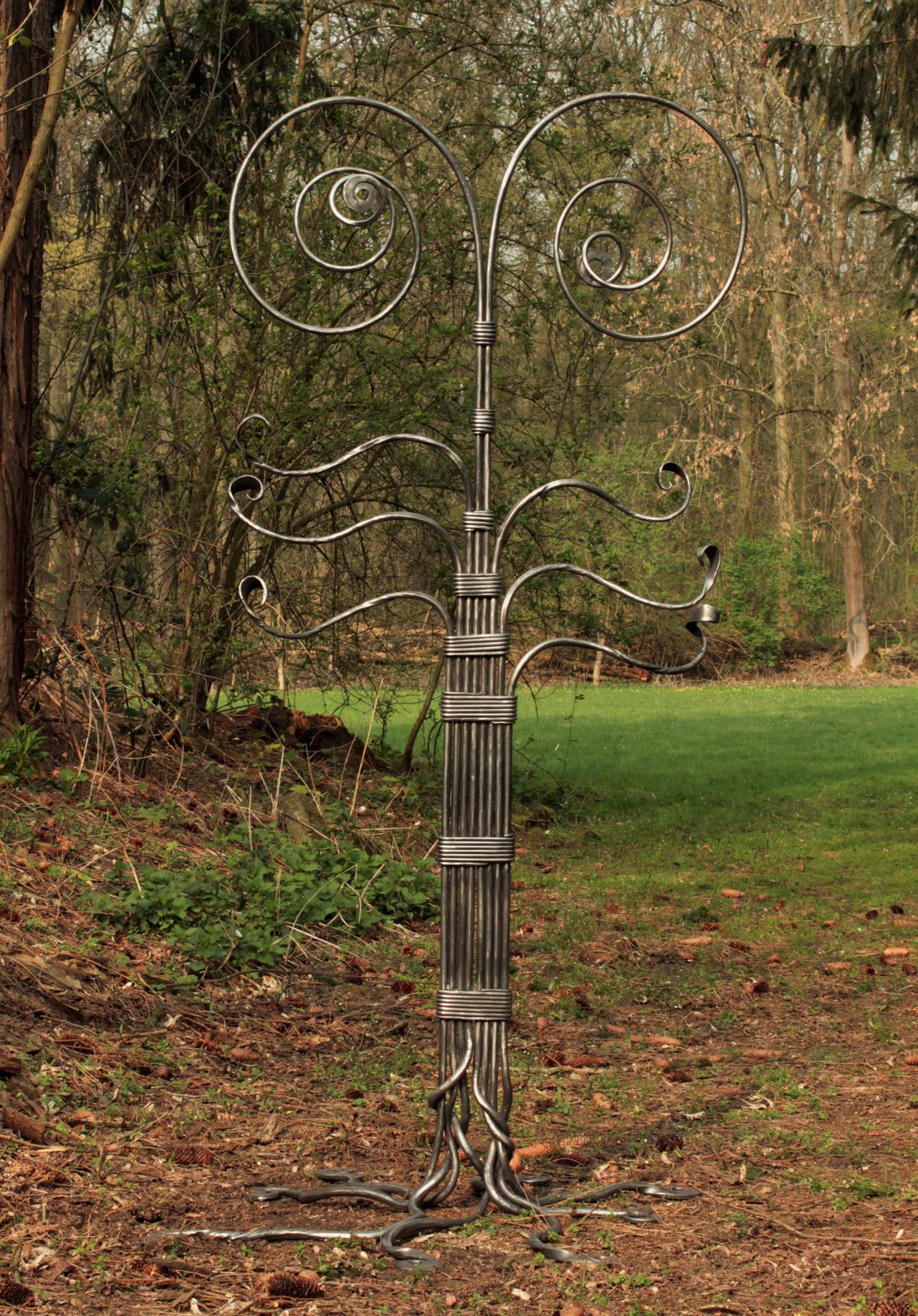 Stehlenbaum mit Gesicht, 80 x 8 mm Winkeleisen aus einem Stück geschmiedet.